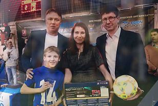 Руководитель компании "DiaSport" вручает приз лучшему игроку "Кубка Колыванова-2020"
